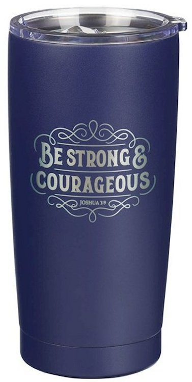 The Strong and Courageous Navy Blue Stainless Steel Travel Tumbler is ideal for taking a beverage on the go, and it is a meaningful graduation gift for a recent high school or college graduate.