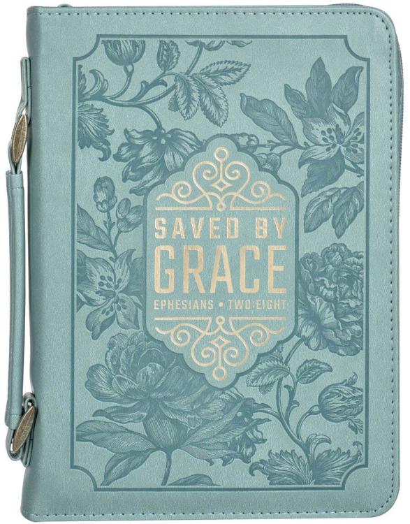The exquisite Saved by Grace Teal Faux Leather Fashion Bible Cover will remind your sister, cousin, or aunt how sweet and amazing the Lord’s grace is in that He loved us first.