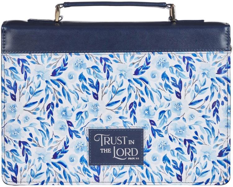 Let the gentle flutter of the flowers and leaves on the Trust in the Lord Blue Botany Faux Leather Bible Cover remind you to place your trust in the Lord. Just as the leaves do not resist the wind~ your heart and mind should surrender to the prompting of the Holy Spirit. This lovely Bible cover will remind you to set your mind on the guidance of the Lord and grow in trusting and discerning His will.