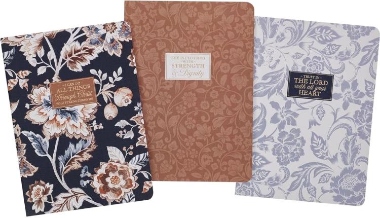 The I Can Do All Things Honey-brown and Navy Large Notebook Set provides you with three distinct notebooks, perfect for capturing your thoughts, making lists, and jotting down sermon notes.
