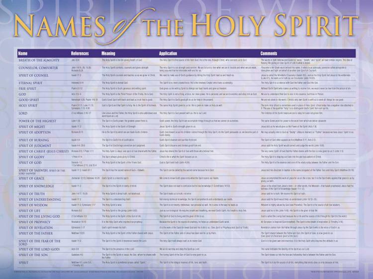 The Holy Spirit is the third Person of the Trinity and is called by many names in the Bible. This chart will inform your study and prayer life as well as enrich your worship of God. Learn about The work of the Spirit – Spiritual gifts and spiritual fruit – The living presence of God within every believer – The Spirit’s role in Jesus’ ministry.